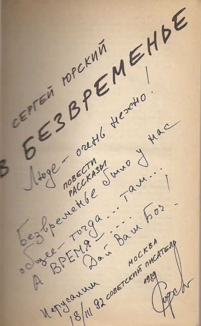 В доме поселилась ещё одна книга. Книга рассказов Сергея Юрьевича с его автографом. Должна признаться, что ныне я просто делюсь воспоминаниями, а 19 лет тому назад такая встреча произвела сильнейшее впечатление. Тем более, что Юрского посещали люди, которые в мой дом и не попали бы просто так! А тут умоляли разрешить придти... в назначенное время, если удобно и когда удобно...