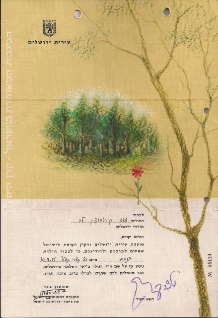 В день рождения моего сына Даниэля и мне в дом пришла радость в виде этого документа за подписью ТЕДДИ КОЛЕКА. К деревьям у меня особое отношение.