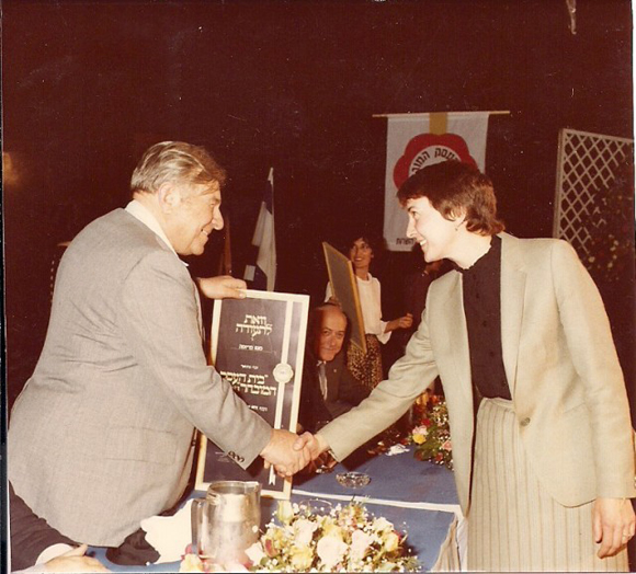 Каждый год муниципалитет приглашает представителей малых бизнесов на вечер торжественного вручения поощрительных грамот за хорошую работу. Вот и мне пришлось подняться на сцену за этой самой деревянной грамотой, что потом должна висеть на стене и радовать покупателя тем, что он зашёл в достойное место. Я представляла известный магазин-студию "ФОТО-ПРИЗМА," где работала уже четыре года фотографом, очень гордилась и дорожила этим историческим местом, созданным ещё до образования государства. Поэтому довольно уверенно, вступив на сцену, протянула руку для пожатия навстречу руке, хозяин которой, улыбаясь, на весь зал произнёс: "Люда-Люда!" ...Руку мне жал мэр города Иерусалима!