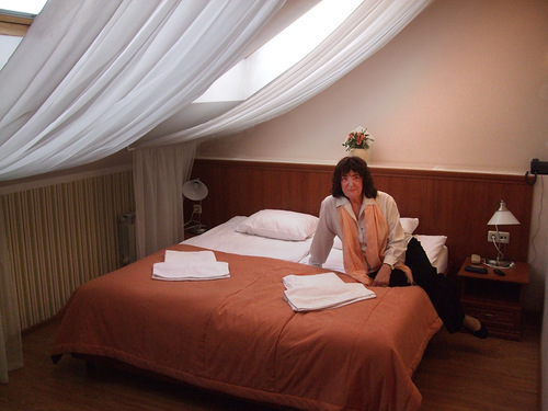 Назавтра я могла получить ещё один альбом, но мне надо было улетать, а в издательстве, откуда должны были забрать вышедший новый альбом, об этом не знали... и — не поторопились! Но альбом очень скоро поселится в Иерусалиме! Марк обещал. А это — чудесный номер в гостиннице, где положили одеяло под цвет моего шарфа!