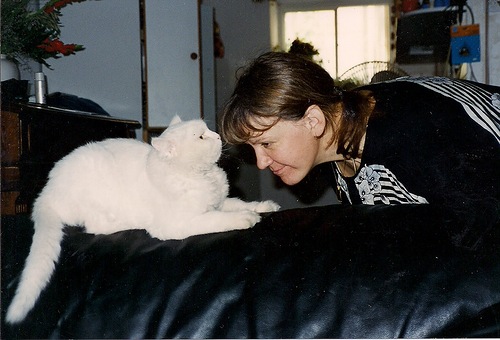 Когда приходил Валя Никулин в гости и садился к столу, Дашка тут же вспрыгивала на стол и, не мигая, следила за каждым Валиным движением, потом могла долгое время просто смотреть Вале в лицо. Этого даже такой артист, как Никулин, выдержать не мог и говорил своими обертонами: "Дашка, кончай"! А однажды подарил ей цепочку. Дашка сидела, не шелохнувшись, как модель. Цепочку не стряхнула. Жаль, снимок этот не сохранился... часто "уводили", пока "дом открытых дверей" не пришлось закрыть. К сожалению.