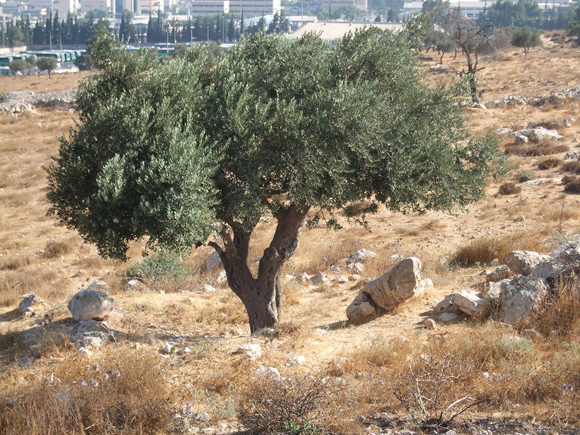 Там за забором видна цивилизация и другой мир. Я же вдруг залюбовалась оливой необыкновенной красоты и цвета. Хорошее место она выбрала для жизни. Удачное.