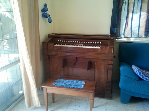 Католический священник из Старого Города Иерусалима в 77-м году произвёл с моим мужем удивительный обмен. Ксёндз забрал наш "Жучок" 52-го года рождения взамен на фисгармонию из своей церкви, лет на пятьдесят постарше машины. Все были жутко довольны, т.к. каждый получил то, что очень хотел. Вот так родилась мечта овладеть инструментом, а уж когда уйдём на пенсию, играть в четыре руки и радоваться неземным органным звукам.